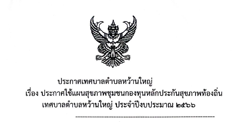 ด้วย กองทุนหลักประกันสุขภาพท้องถิ้น เทศบาลตำบลหว้านใหญ่ได้ดำเนินการจัดทำแผนสุขภาพชุมชนกองทุนหลักประกันสุขภาพท้องถิ่น เทศบาลตำบลหว้านใหญ่เพื่อกรอบในสนับสนุนงบประมาณให้แก่หน่วยงาน กลุ่มองค์กรต่างๆ ในการจัดบริการสาธารณสุข และเพื่อให้การดำเนินการป้องกันโรคและ จัดบริการสาธารณสุขเป็นไปตามสภาพปัญหาในพื้นที่อย่างแท้จริง โดยดำเนินการตามประกาศคณะกรรมการหลักประกัน สุขภาพแห่งชาติ เรื่อง หลักเกณฑ์เพื่อสนับสนุนให้องค์การปกครองส่วนท้องถิ่นดำเนินงานและบริหารจัดการกองทุน หลักประกันสุขภาพในระดับท้องถิ่นหรือพื้นที่ พ.ศ. 2561 และที่แก้ไขเพิ่มเติม ข้อ 6 "ให้องค์กรปกครองส่วนท้องถิ่นเป็นผู้ดำเนินงานและบริหารจัดการกองทุนหลักประกันสุขภาพในระดับท้องถิ่นหรือพื้นที่นั้น"
