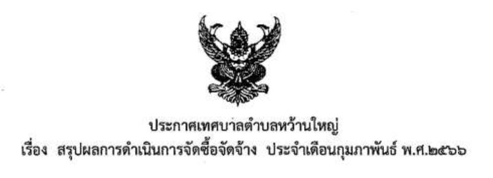 สรุปผลการดำเนินการจัดซื้อจัดจ้าง ประจำเดือนกุมภาพันธ์ 2566