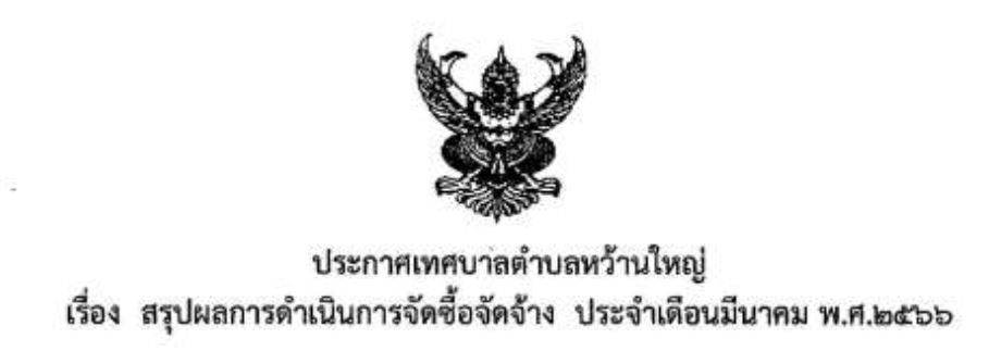 สรุปผลการดำเนินการจัดซื้อจัดจ้าง ประจำเดือนมีนาคม 2566